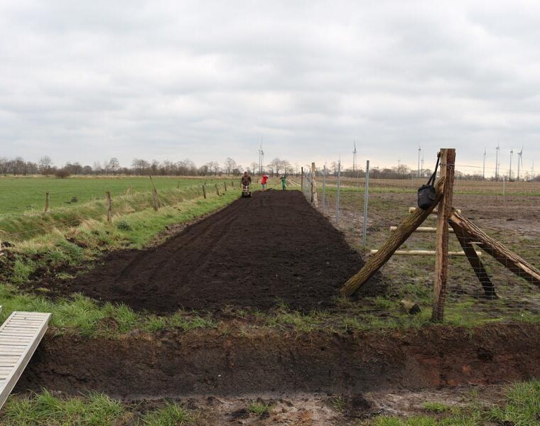 Nicht jede Fläche eignet sich zum Pflanzen von Bäumen, kann aber dennoch ökologisch sinnvoll genutzt werden. Ein gut 200 m² großer Streifen der Waldwuchsprojektfläche der Familie Ide in Goldebek musste an der Nordseite wegen des Flutgrabens „baumfrei“ gehalten werden. Dieser Streifen soll nun aufblühen: Im März haben wir gemeinsam mit der Baumschule Ceban den Boden gepflügt, von Grassoden befreit und geharkt. Anschließend wurde der Samen ausgebracht: eine Blütenmeer-Saummischung der Blütenmeer-GmbH, die reichlich regionale Kräuter enthält. Heimische Wildbienen und andere Insekten sollen dort zukünftig reichlich Nahrung finden. Damit sich die Insekten richtig wohl fühlen, haben wir ein 120cm x 100cm großes freistehendes Bienen- und Insektenhotel aufgestellt. Zwischen Holunderbüschen bietet es reichlich Platz für den Erstbezug und ist selbstverständlich provisions- und courtagefrei 😊.